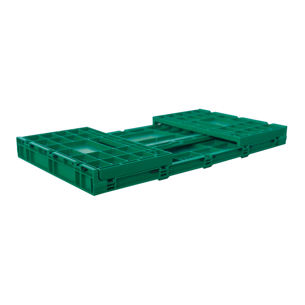 La boîte pliante en plastique adopte les normes internationales et coopère avec la palette standard européenne de type 1210, la norme européenne de type 1208 ou la palette standard japonaise de type T11, qui peuvent réaliser une manutention mécanisée, améliorer l'efficacité du chiffre d'affaires et contrôler le taux de dommages aux marchandises ; il peut également être utilisé avec des chariots à tortues pour empiler et déplacer.